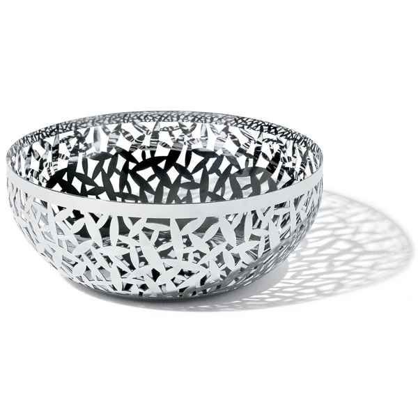 Smakfull fruktskål i rustfritt stål fra serien "Cactus!". Finnes i to ulike størrelser. Produktene i serien har fått sitt lekre mønster utskjært med hjelp av laser. Mål: ø 29cm, H 10,8cmMått: ø 21,1cm, H 9,5cm