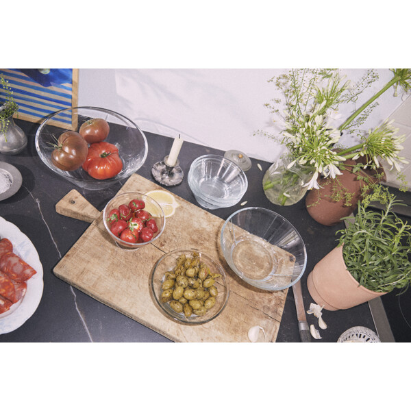 Denne mellomstore skålen av glass er praktisk og passer til mye. Bruk den for servering av sallater eller andre tilbehør, som vispeskål på kjøkkenet, eller som fruktskål i stuen. Grand Cru-seriens enkle design skaper en god grunn i kjøkkenet gjennom hele livet, og er lett å kombinere med annet servise.Design: Erik Bagger Størrelse: Diameter: 20 cm. Bredde: 19,5 cm. Dybde: 19,5 cm. Høyde: 7,8 cm. Material: Blyfritt glass. Farge: Blank. Tåler maskinvask i maks 50-55° C.