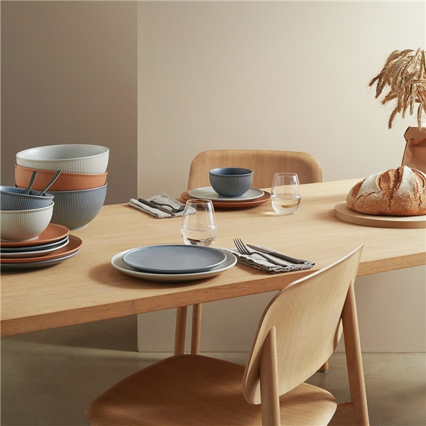 Thomas Clay Bowl 15 cm fra Rosenthal er en steintøysskål med plissert mønster som går fra toppen til midten av bollen og finnes i flere farger. Skålen passer til supper, desserter og som frokostskål. I serien er det ulike deler som passer sammen eller i kombinasjon med andre farger.