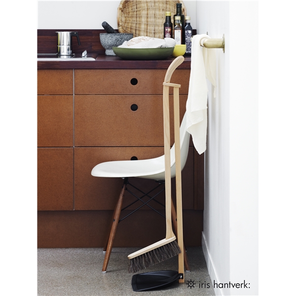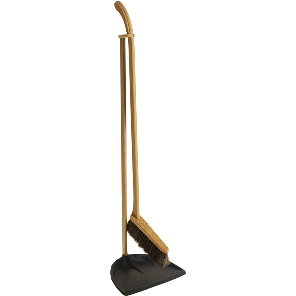 Komplett søppelsett fra Iris Hantverk i stilig og praktisk design. Søppelsettet er laget i oljet bok med spade i polypropylen og en lang skaftbørste i låret. Hovedtøyet i børsten feier effektivt opp smuler og grus uten å sprute rundt. Rengjør børsten på beste måte ved å fjerne støv som har samlet seg i børsten for hånd eller bruke en gammel hårbørste for å kamme ut alt støvet. Hvis børsten mister formen, bløt den i litt lunkent vann, klem ut og bøy halmen rett, og la den tørke hengende i festet. Spaden blir rengjort med en fuktig klut.