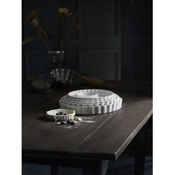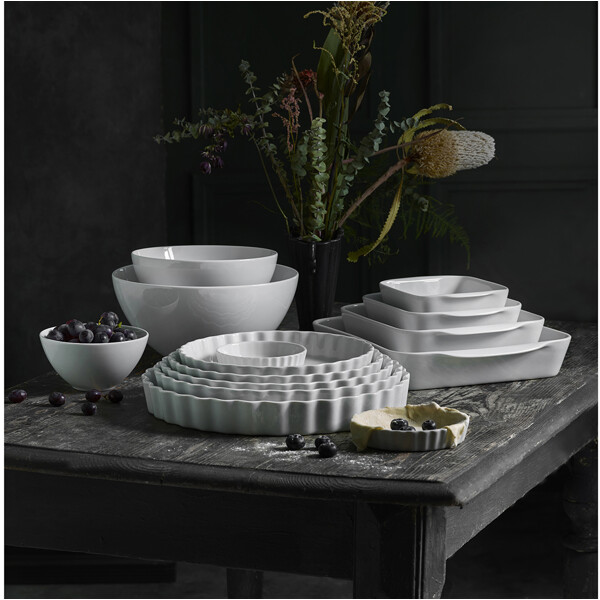 Design: Pillivuyt Pillivuyt er et fransk selskap som lager og fremstiller sin egen porselenmasse og så lager mattallerkener, skåler og annen porselen. Pillivuytporselen er klassisk og hører til favorittene blant hotell og restauranter takket være den høye kvaliteten. Pillivuyt er også svært populært som vanlig porselen for hjemmebruk. Paiform i originalutforming med buet kant og flat bunn. Pillivuyt-porselenet er svært slag og støtsikkert samt tåler store temperaturforskjeller. Alle deler er ovnsfaste og spesielt passende til mikrobølgeovn – også rett fra fryseren til ovn (fra -30 grader til +350 grader).Størrelse: 11 cm, 13,3 cm, 24 cm, 27 cm, 29 cm, 33 cm Material: Ovnsfast porselen