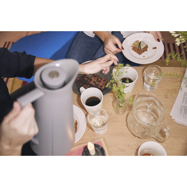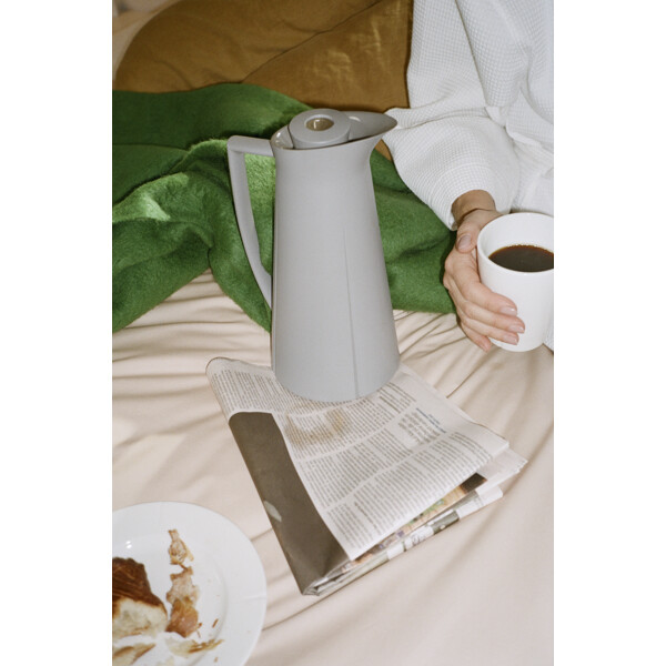 Testvinnende termoskanne fra Grand Cru finnes nå i denne elegante tåkegrå varianten, som passer godt i den industrielle innredningstrenden i hjemmet og på bordet. Den praktiske trykknappfunksjonen er laget slik at kannen holder varmen lengre, ettersom du ikke trenger å åpne lokket når du skal helle. Dermed unngår du at kald luft kommer inn. En god presangidé sammen med en pose gode kaffebønner.Termoskannen i blankpolert stål i luksusvariant, er Grand Crus jubileumstermoskanne med praktisk trykknappfunksjon som gjør det enkelt å helle fra kannen. Den drypper ikke og holder temperaturen godt. En god presangidé til en spesiell anledning – eller til deg som verdsetter gjennomtenkt dansk design. Termoskannen av stål og sort er produsert i begrenset antall i anledning av Grand Crus 20-årsjubileum, og selges bare så lenge lageret rekker..Design: Rosendahl Diameter: 17 cm. Høyde: 28,4 cm. Bredde: 14,9 cm. Dybde: 17,1 cm. Material: Blankpolert stål og glassinnsats, øvrige kanner er i plast med glassinnsats. Tåler ikke maskinvask.
