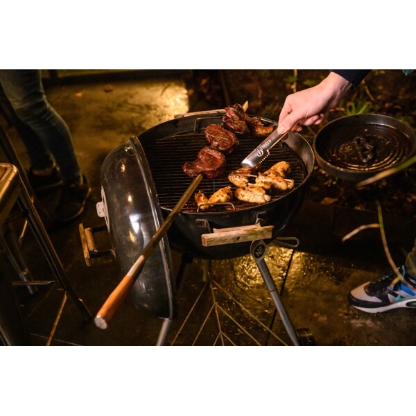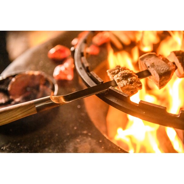 V-formet spyd 50 cm, er laget av høykvalitetsstål i kombinasjon med oliventre. Håndtaket har en rund til oval form og er laget av oliventre. Dette gjør det veldig behagelig å holde i. Takket være de skarpe spissene kan du enkelt tre hvilken som helst kjøtt-, grønnsaks- eller fruktbit på spydet ditt, og spydets V-form sørger for at det sitter stødig på plass under grilling og servering.