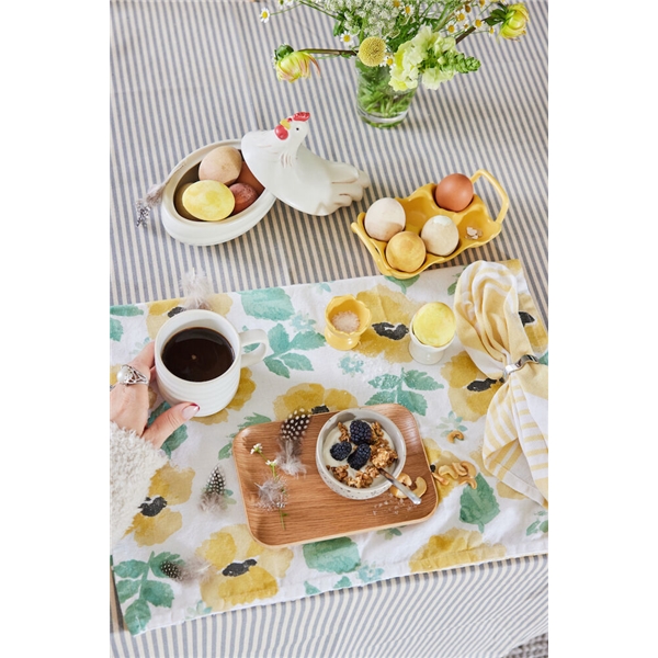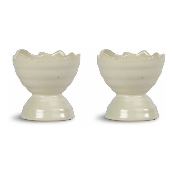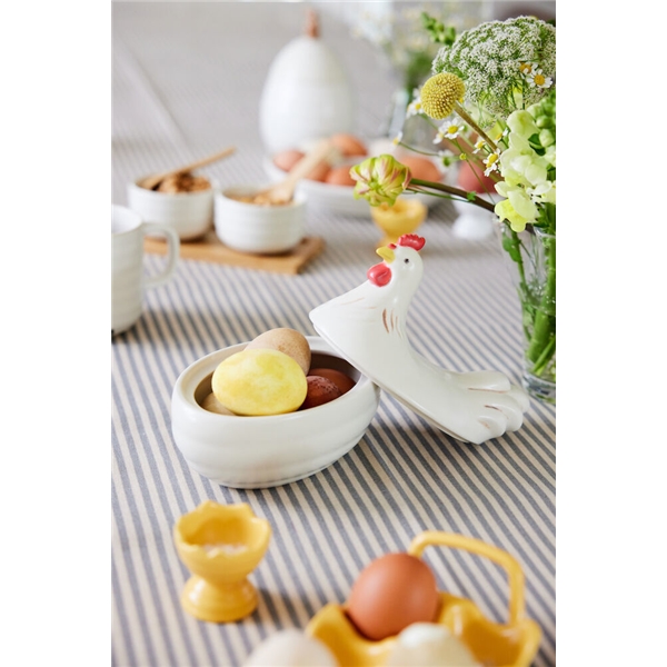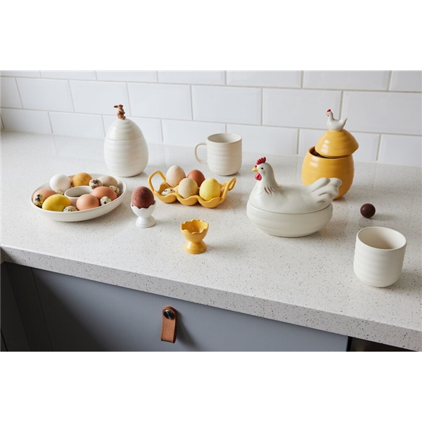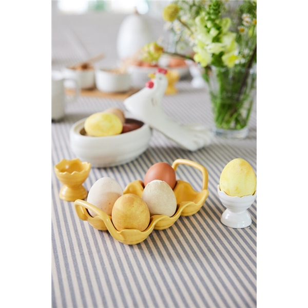 Ellen eggekopp er perfekt til både frokost og påskemiddag og passer godt til alle delene i serien med samme navn. Eggekoppen har akkurat passe størrelse med en organisk kant som minner om skallet til et egg. Ellen er laget av steintøy. Selges i 2-pakninger i fin gaveeske. Tilgjengelig i off-white eller i en varm gul farge. Eggekoppene tåler oppvaskmaskin for enkel rengjøring og vedlikehold. Serien fungerer like godt hele året, til hverdagsbruk så vel som under våre kjære høytider og tradisjoner.