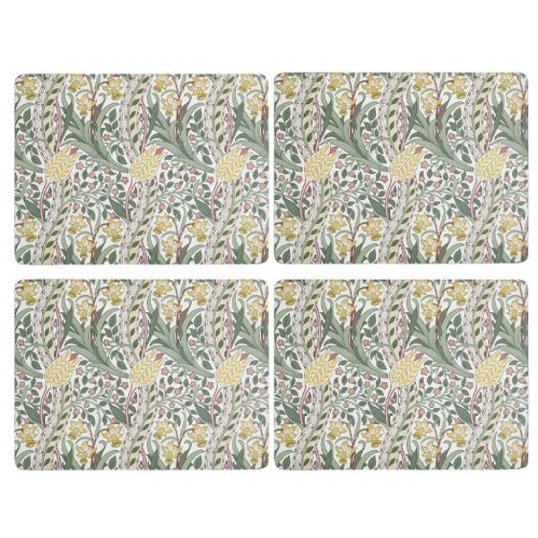 William Morris & Co:s originalmønstre løfter bordets estetikk og gir en kunstnerisk touch til din borddekking. Disse brikkene er ikke bare vakre, de er også praktiske og motstandsdyktige mot flekker og høye temperaturer opp til 100°C. Rengjør dem enkelt med en fuktig klut. Perfekt for hverdagsbruk eller spesielle anledninger, disse brikkene fra Morris & Co er en sann fryd for øyet og beskytter bordet ditt med stil.Mål: 40,1 x 29,8 cm.