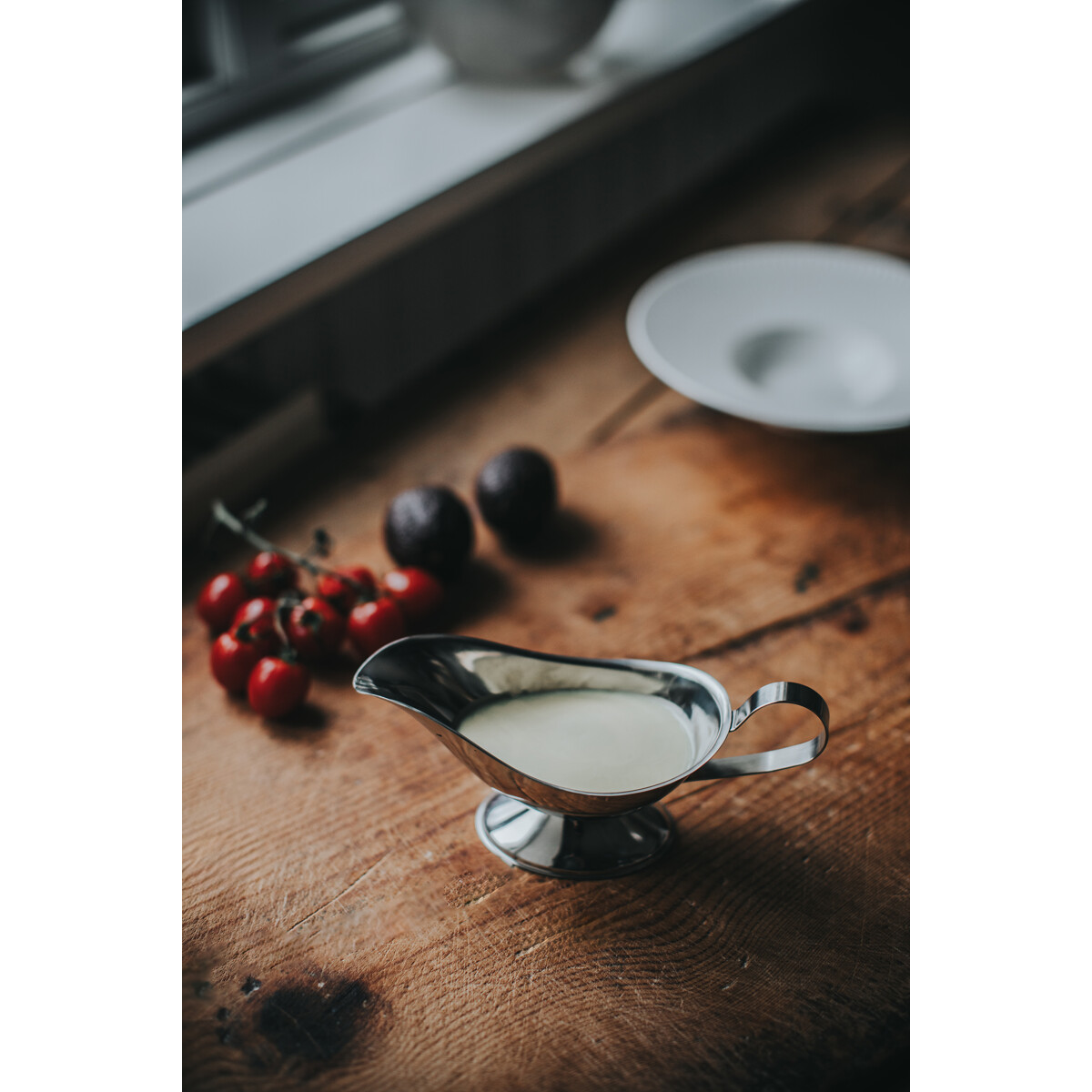 Saumi sausnebb i rustfritt stål rommer 25 cl og gir en ren, kontrollert servering av sauser og delikate smaker. Den stabile konstruksjonen kombineres med en smal tut som reduserer søl. En stilren detalj som passer både til hverdagsmiddager og helgens finere retter.