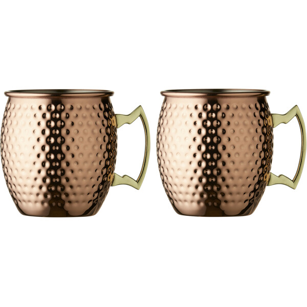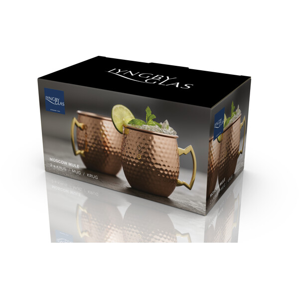 Den vakre koppen med håndtak og kobberbelagt, hamret eksteriør er den klassiske og karakteristiske koppen for den populære cocktailen moscow mule, som har fått en moderne comeback. Moscow mule lages enkelt av ginger beer, vodka, limesaft og rikelig med isbiter slik at drikken holder seg iskald. Koppen er meget lett og rommer 55 cl.