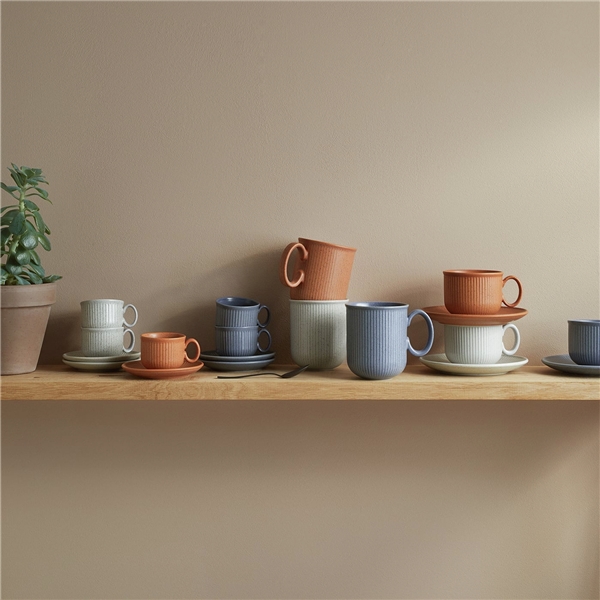 Thomas Clay Mug fra Rosenthal er et steintøyskrus med plissert mønster som går fra toppen og ned til bunnen av kruset og finnes i flere farger. Kruset passer både til morgenkaffe og som tekrus. I serien er det ulike deler som passer sammen eller i kombinasjon med andre farger.