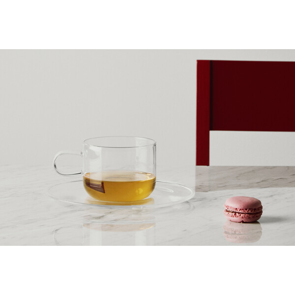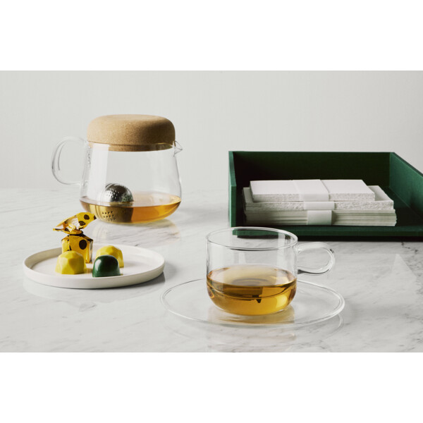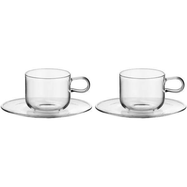 Viva fra Kosta Boda er en allsidig serie med uformelle glass og drikketilbehør for daglig sosial bruk. 30 cl koppen med fat er en skjønnhet og får deg til å lengte etter en avslappende stund med ditt favorittvalg av varm drikke. Design av Matti Klenell.