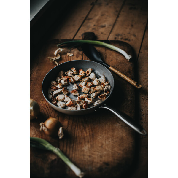 En stekepanne for deg som stiller høye krav til både ytelse og holdbarhet. Denne pannen har et slitesterkt KFCC keramisk belegg (gen 8) som gir en naturlig non-stick-overflate uten PFAS, perfekt for sunn matlaging med lite eller ingen fett. Laget i 3,5 mm aluminium med en robust 0,5 mm rustfri bunnplate (SS430) for jevn varmefordeling på alle typer komfyrer, inkludert induksjon. Utsiden er behandlet med hardanodisert høytemperaturbelegg for ekstra motstandsdyktighet og holdbarhet.