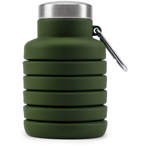 Silikonflaske fra Orrefors Hunting som du enkelt kan trykke sammen og trekke fra hverandre for å gjøre større eller mindre. På toppen er det en karabinkrok til å henge på, for eksempel sekken. Et perfekt utendørs produkt for å minimere pakking. Flasken finnes i flere farger.