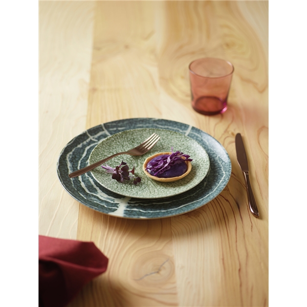 På Nature Essence Appetizer-tallerken 20 cm forsterker og omformer relieff de typiske plantestripene av blader. Miks og match forskjellige tallerkener og retter for en fantastisk naturlig setting.