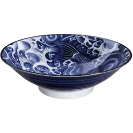 Vakker skål fra Tokyo Design Studio med blått asiatiskt mønster av en karpefisk. Carp Menbachi Bowl er perfekt for for eksempel ramen eller risretter. Bollen kombineres med fordel med de andre bollene fra samme serie eller en av de andre seriene fra Tokyo Design Studio. Bollen er håndlaget i Japan.