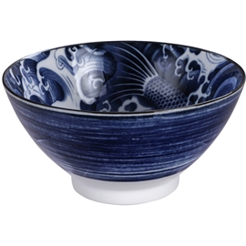 Blå håndmalt skål fra Tokyo Design Studio. Skålen Carp Sori har et blått asiatisk mønster av en karpefisk. Bland og match skålene fra samme serie eller noen av de andre delene fra Tokyo Design Studio. Skålen er håndmalt i Japan.