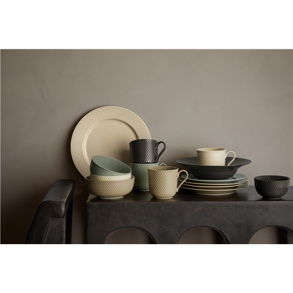 Et jordnært og tilstedeværende uttrykk på bordet. Med en fargepalett i fire elegante jordfarger inviterer Rhombe Earth oss til å senke tempoet, være til stede ved måltidet, med dem vi spiser med, og legge merke til skjønnheten i serviset. Seriens pastatallerken på 24,5 cm i diameter, som også er perfekt til suppe, har den mørkegrå fargen Slate som, akkurat som de andre dempede jordfargene i Rhombe Earth, fremhever Rhombe-servisets ikoniske reliefmønster på en ny og annerledes måte. Den inviterer oss til å gå et steg dypere og være oppmerksomme på maten på tallerkenen, sansene og samtalen med de andre rundt bordet. Alle Rhombe Earth-seriens fire vakre farger – Marble, Clay, Moss og Slate – er, akkurat som i Lyngby Porcelæns populære Rhombe Color-serie, nøye utvalgt av designduoen Stilleben, som består av Ditte Reckweg og Jelena Schou Nordentoft. Bruk de forskjellige Rhombe Earth-delene sammen i din borddekking og la de forskjellige størrelsene på tallerkenene titte frem under hverandre slik at de varme fargene får snakke med hverandre. Tallerkenene, krusene og skålene i Rhombe Earth er naturligvis også perfekte både sammen og hver for seg som et supplement til din Rhombe Color-samling eller i kombinasjon med det klassiske hvite Rhombe-serviset, der de grå og brune nyansene på Rhombe Earth-delene sammen med Lyngby Porcelæns linjer skaper et moderne og avslappet uttrykk og står vakkert mot det hvite porselenet.