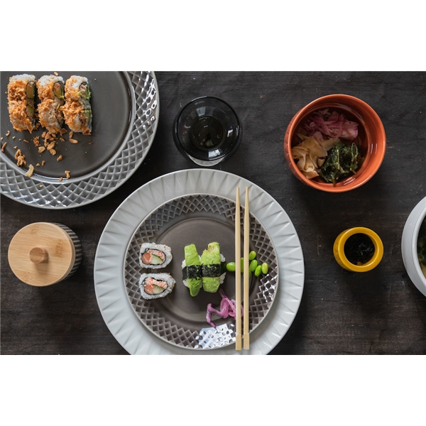 Tallerken fra Sagaforms serie Margot. Tallerkenen har den retro-trendy og karakteristiske reliefen. Margot-serien er produsert i et samarbeid mellom designeren Margot Barolo og Sagaform. Bland og match tallerkenen med de forskjellige fargene på Margot-porselen. Tallerkenen tåler mikrobølgeovn og oppvaskmaskin.