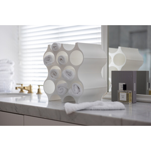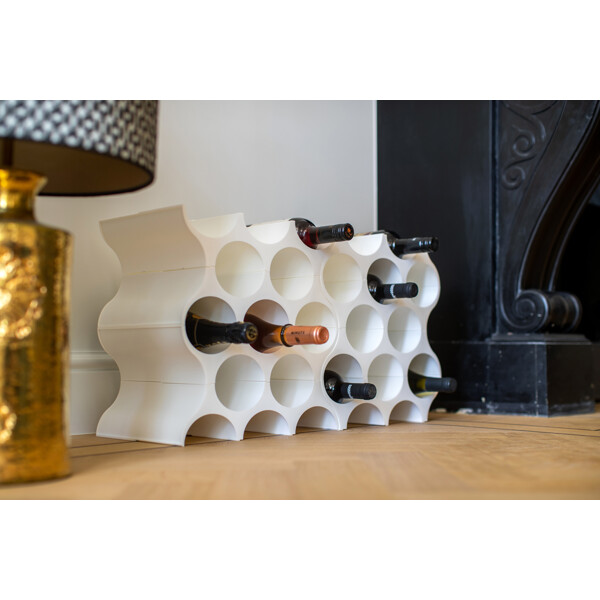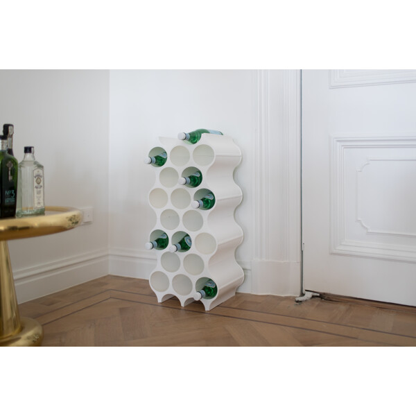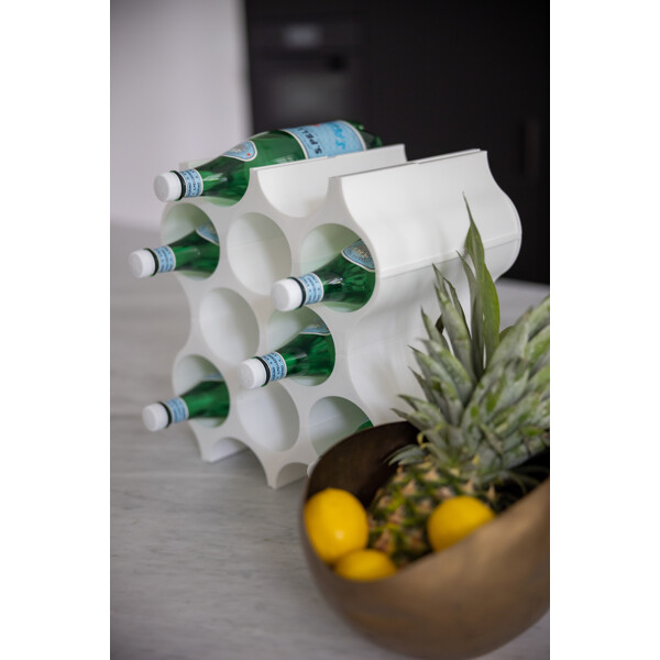 Stilig byggbart vinstativ som rommer 10 vinflasker. Ønsker du å ha vinstativet høyere, kan du stable flere vinstativ oppå hverandre, noe som gjør at du kan bygge det fra gulv til tak om du vil! Vinstativet SET-UP er designet i hvit plast, og du kan bruke det til oppbevaring av andre ting også - for eksempel tekstiler eller magasiner.