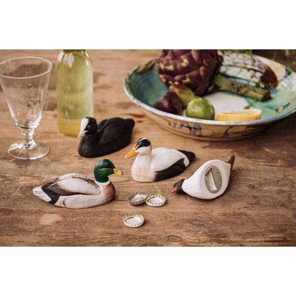 Leken design og høy kvalitet møter unikt håndverk i disse tidløse håndskårne flaskeåpnerne. Flaskeåpner i tre føles behagelig i hånden ved bruk. Og liver opp både hjemme på kjøkkenet eller som en morsom vertinnegave. Selve åpneren i metall er innfelt på undersiden og synes ikke når flaskeåpneren ligger på bordet.