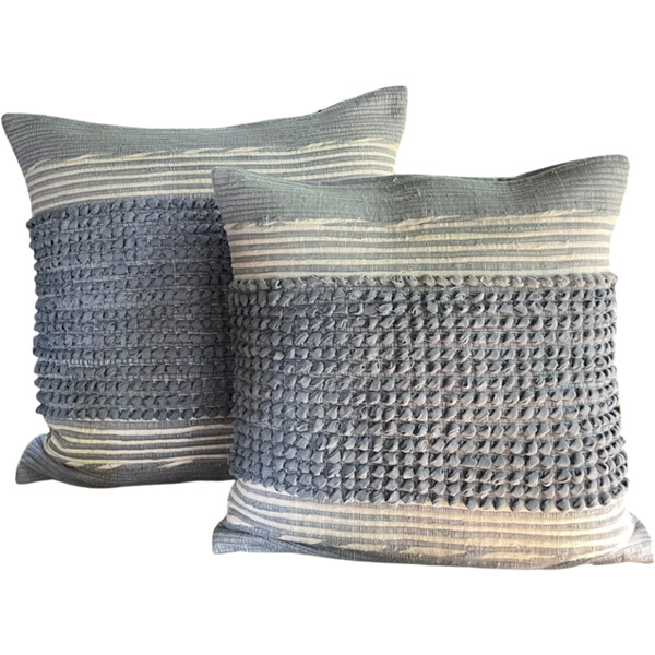 Legg til en touch av avslappet stil og unik tekstur i ditt hjem med vårt sjarmerende, håndlagde putetrekk fra Thailand. Med et herlig denimstripet mønster gir dette trekket en avslappet, men likevel elegant følelse og koselig komfort til hvilken som helst sofa, lenestol eller seng. Tilgjengelig i 2 størrelser. Størrelse: 50 x 50 cm Materiale: 100% håndvevd bomull. Design: Stilig denimstripet mønster med en teksturert, håndlaget følelse. Håndlaget Kvalitet: Hvert trekk er unikt utformet og viser ekte håndverksskicklighet og subtile variasjoner som bidrar til dets karakter. Mangfoldig Dekor: Perfekt for moderne, kystnære, landlige eller eklektiske interiører.