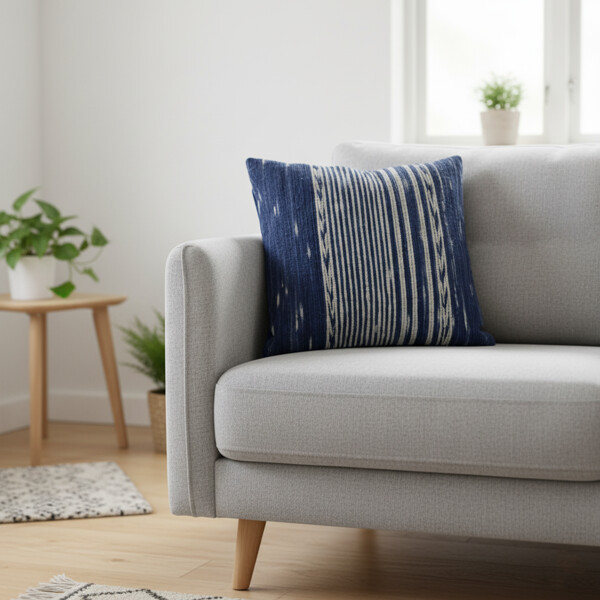 Legg til sjarm og unik tekstur i stuen din med vårt utsøkte håndlagde putetrekk fra Thailand. Med vakre indigotoner og intrikate flettede striper gir dette putetrekket en kunstnerisk touch og koselig varme til enhver sofa, lenestol eller seng. Tilgjengelig i 2 størrelser.