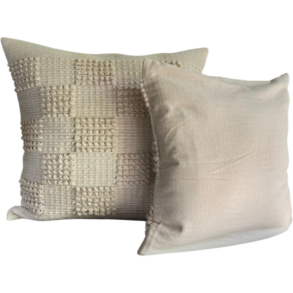 Legg til rik tekstur til ditt hjem med vårt vakre håndlagde putetrekk fra Thailand. Med et elegant elfenbensfarget rutemønster gir dette trekket en raffinert, koselig og innbydende følelse til hvilken som helst sofa, lenestol eller seng. Tilgjengelig i 2 størrelser. Størrelse: 50 x 50 cm Materiale: 100% håndvevd bomull. Design: Klassisk elfenbensfarget rutemønster med en distinkt strukturert vev, som tilbyr en tidløs og allsidig estetikk. Håndlaget Kvalitet: Hvert trekk er nøye laget og viser frem ekte håndverkskvalitet og subtile variasjoner som gjør hvert stykke unikt. Allsidig Dekor: Ideell for minimalistiske, skandinaviske, moderne eller tradisjonelle interiører, og forbedrer ditt hjem med diskret eleganse.
