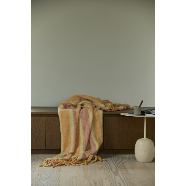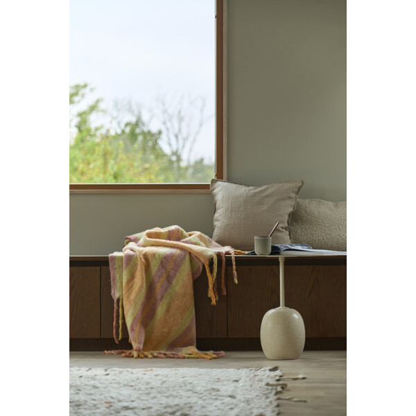 Tidløs pledd med ullens naturlige varme og den lette akrylens smidighet. Den balanserte strukturen og de myke nyansene gjør den til en innbydende detalj i alle rom, fra hytte til stue.