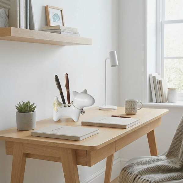 Den bedårende Bull Terrier-hund formen gir en leken, men likevel elegant touch til skrivebordet, hyllen eller hvilken som helst overflate.