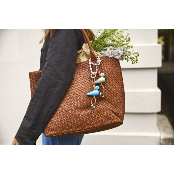 Ta med deg Kay Bojesens elskede klassikere og din kjærlighet til original dansk design overalt. På vesken. På beltet. Eller med bilnøklene. Denne Kay Bojesen-nøkkelringen har en grønn sangfugl i miniatyrutgave, laget i FSC®-sertifisert bøketre, og kompletteres med en elegant og praktisk snor i ekte lær. Snoren kan justeres opp og ned i forhold til figuren, slik at du kan skape ditt helt eget uttrykk. Øverst sitter en stor sølvfarget nøkkelring gravert med Kay Bojesen Denmark, som både fungerer som en stilren detalj og en praktisk funksjon med sin smarte karabinkrok for enkel åpning og lukking. Under figuren henger tre ekstra nøkkelringer, slik at du har godt med plass til alle dine nøkler. Med en stilren og dekorativ nøkkelring fra Kay Bojesen Denmark kan du enkelt gi hverdagen en personlig touch og ta med original dansk design hvor enn du går – med den klassiske sangfuglen som din alltid trofaste følgesvenn. Kay Bojesen var en mester på å tilføre små detaljer til sine trefigurer. Han fant magien i naturens eget materiale, og med sitt enestående talent for formgivning tok den ene lekne figuren etter den andre form i hans fantasi og ble levende i hans hender. En av hans største klassikere er uten tvil sangfuglen. Og selv om sangfuglen i denne nøkkelringsversjonen er skalert ned til kun 4,5 cm i høyde, bærer den fortsatt med seg en rik arv av Kay Bojesens designhistorie hvor enn du går. Kay Bojesen skapte sin første trefigur i 1922 og åpnet ti år senere butikk og verksted på Bredgade i København. Siden da har Kay Bojesen vært synonymt med original dansk design og et lekent univers av ikoniske trefigurer, skapt med et enestående øye for detaljer, humor og gleden i unikt kvalitets-håndverk. Det er derfor vi sier at Kay Bojesen har vært original siden 1922.