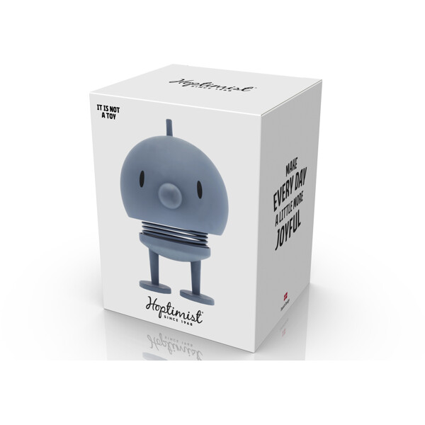 De fleste smil begynner med et annet smil. Hoptimisten i soft-utgaven er symbolet for smil, optimisme og godt humør, og med sine myke, matte farger og sitt runde, harmoniske uttrykk sprer den glede hvor enn den havner. Finnes i ulike utførelser og farger.