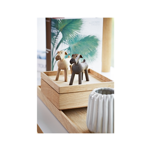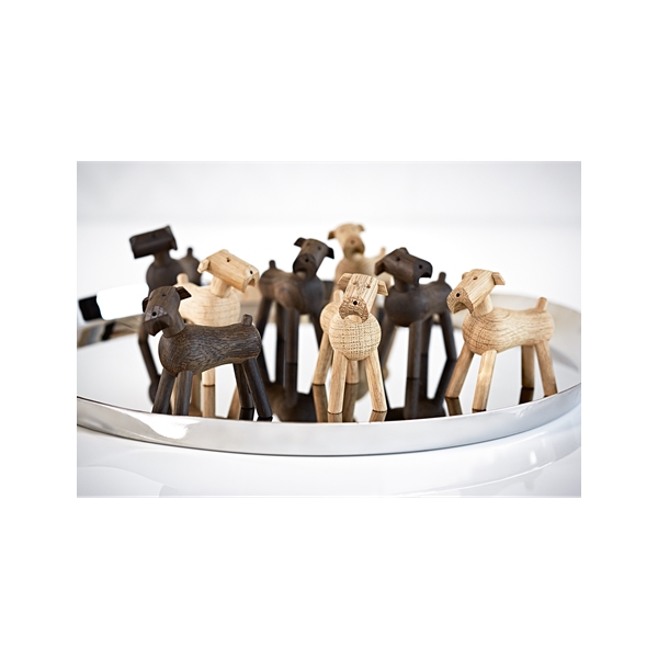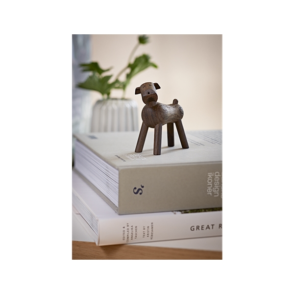 Gi en variant av menneskets beste venn, laget i Eik. Mange hunder har kommet frem fra Kay Bojesens hånd, og Tim er navnet på den lille finurlige terrieren som ble designet i 1935. Med det vridbare hodet på skrå og halen rett opp i luften, er Tim et av Kay Bojesens mest uttrykksfulle dyr. Han blir raskt en kjær venn i familien. En god presangidé til alle som liker dansk design, og en gave som holder livet ut – frå dåp til det er tid for å skape et eget hjem.Størrelse: høyde 7,5 cm.Design: Kay Bojesen. Material: Brun hund: Ubehandlet eik. Mørkebrun hund: Røkt eik.
