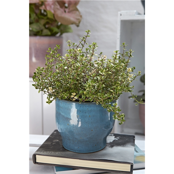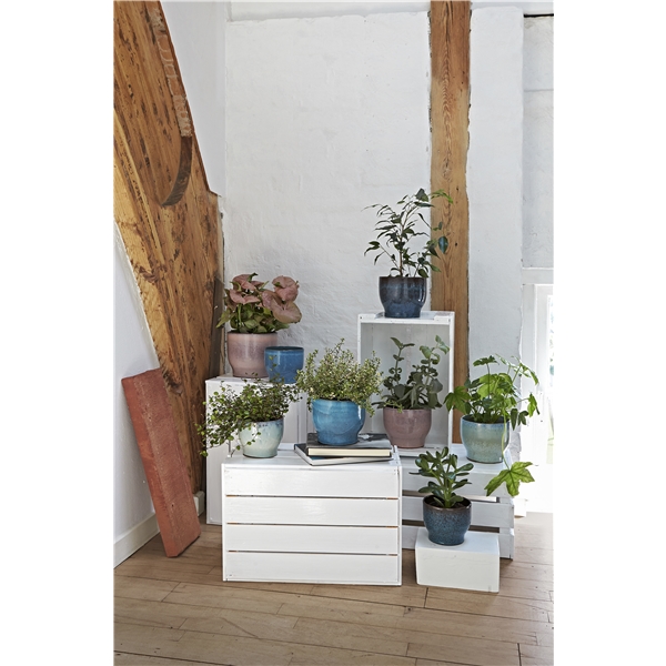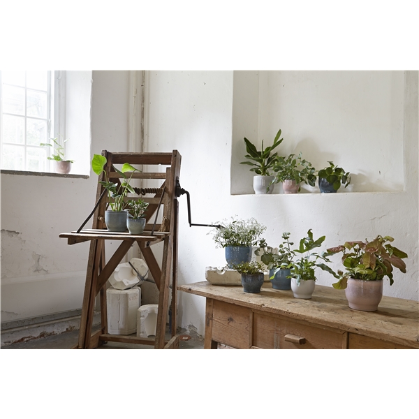 Krukke fra Knabstrup Keramik, hvis modell ble opprettet allerede på 1920-tallet. Blomsterpotten er tilgjengelig i flere farger. Laget av høyfyrt terrakotta med en reaktiv glasur som gir potets vakre unike farger. Farge og mønster kan avvike noe fra bildene og fra produkt til produkt.