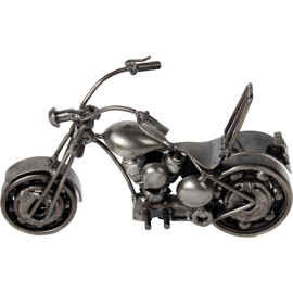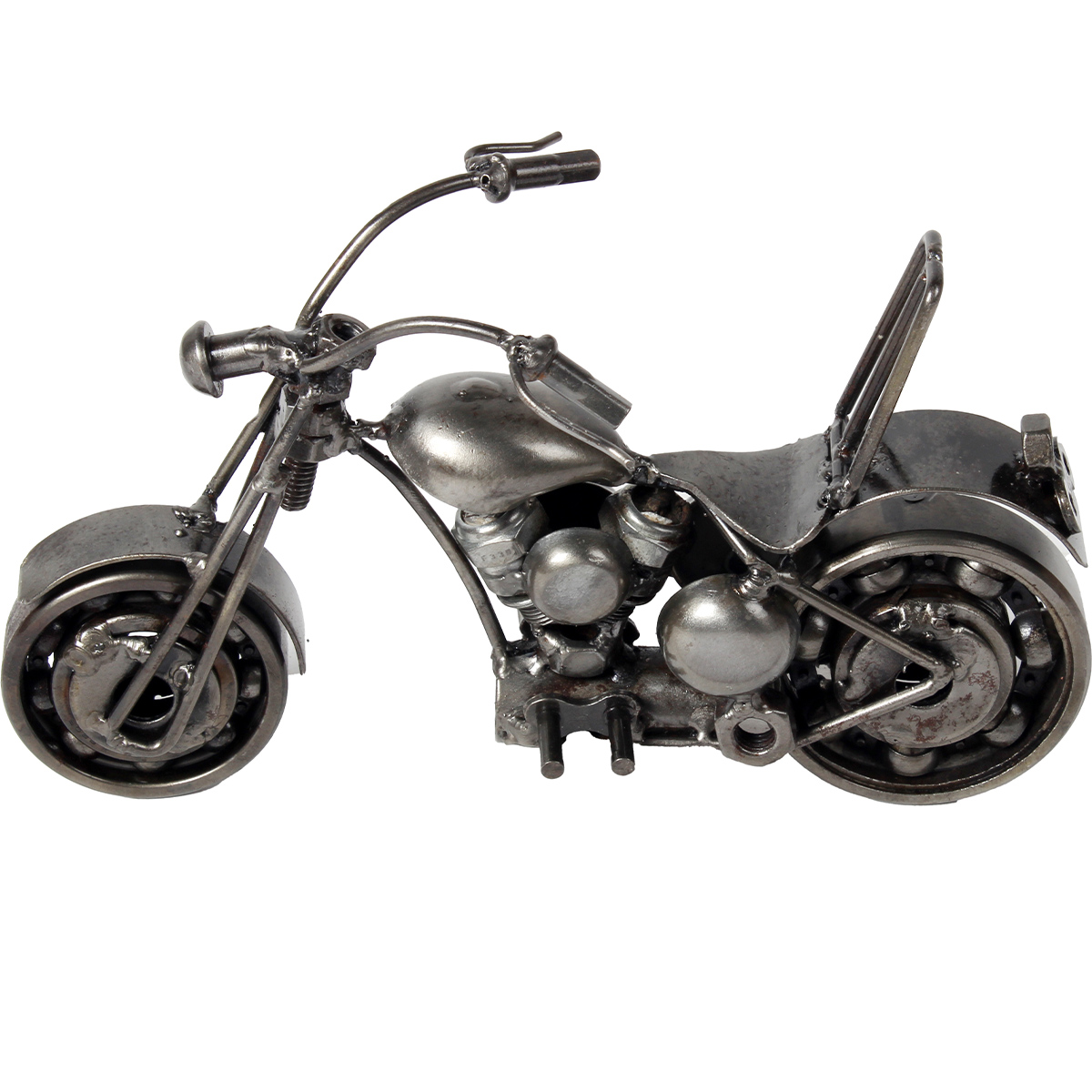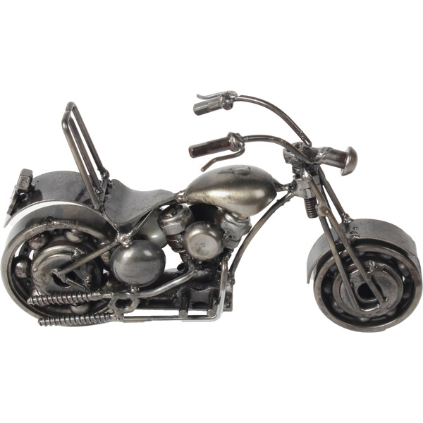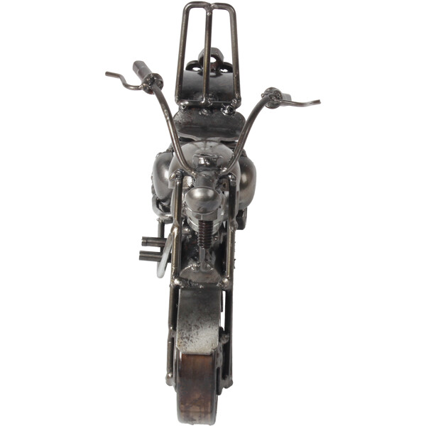 Opplev frihet med vår håndlagde Cruiser Bike-skulptur, laget av resirkulert metall av dyktige håndverkere. Hver detalj, fra styret til motorkomponentene, viser en forvandling av kasserte materialer til et symbol på stil og eventyr. Denne unike skulpturen er ideell for skrivebord eller hyller og har en fengslende industriell estetikk fra gjenbrukte deler. Den hyller cruisinglivsstilen og miljøbevisst håndverk, noe som gjør den perfekt for bikere, samlere og designentusiaster. Mål: Omtrent 5 x 20 x 15 cm Miljøvennlig 100 % Håndlaget Resirkulert Metall