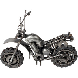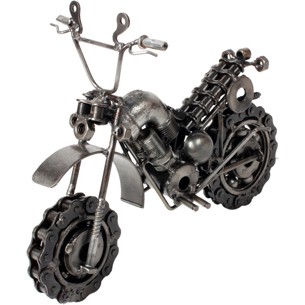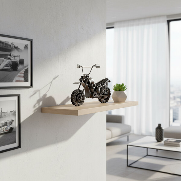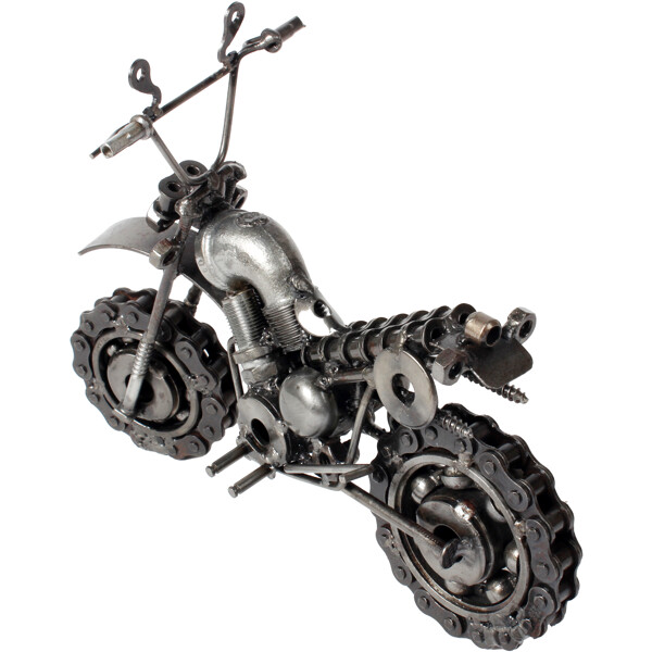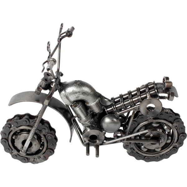 Tilfør hjemmet med spennende motocrossenergi gjennom vår håndlagde motocrossmetallskulptur, et unikt 100 % håndlaget kunstverk. Dens kompakte størrelse passer til alle interiører og tilfører en edgy industriell sjarm. Av metallfragmenter og kjeder skapes en fengslende tekstur, som viser frem håndverkerens talent. Den er perfekt for å forsterke karakteren og den mekaniske skjønnheten i ditt hjem eller kontor.
