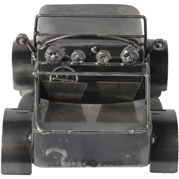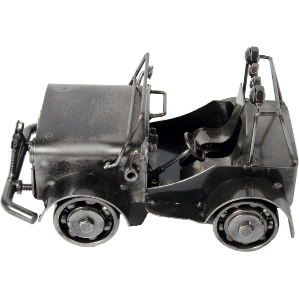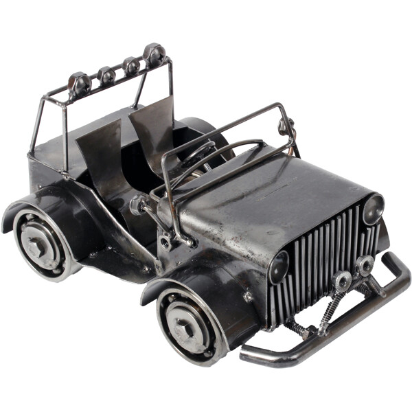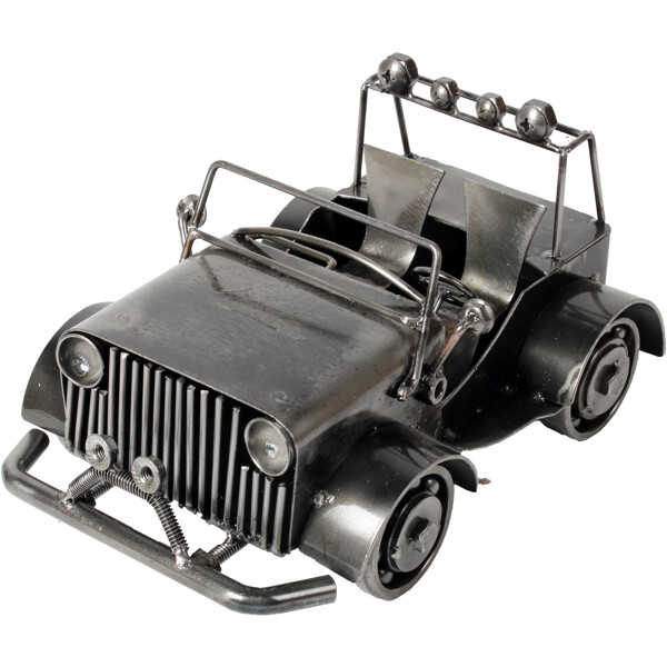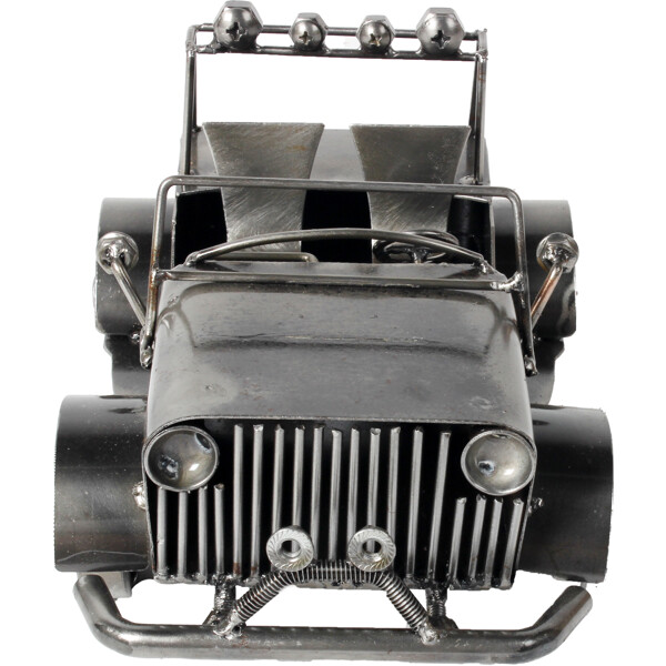 Legg ut på en kunstnerisk reise med vår Off-Road Jeep-skulptur, et 100% håndlaget kunstverk laget av resirkulert metall av dyktige håndverkere. Hver detalj, fra grillen til frontlyktene, gjenspeiler en historie om transformasjon og dyktig håndverk. Denne unike skulpturen er ideell for skrivebord eller vitrineskap og tilbyr en blanding av off-road ånd og bærekraft.