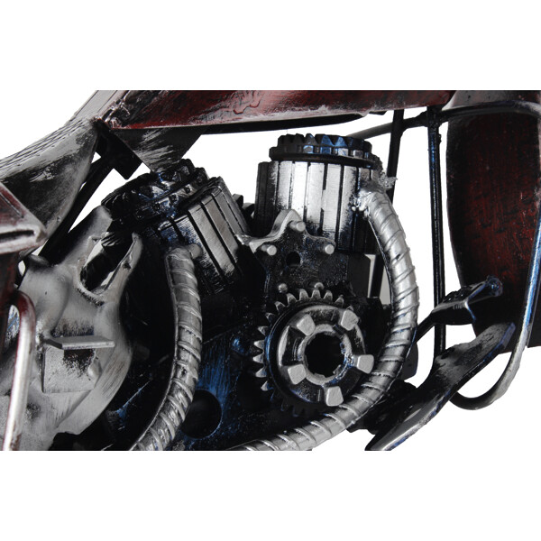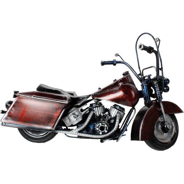 Oppdag sjarmen med vår Road King Motorsykkel skulptur, et unikt 100% håndlaget kunstverk laget av resirkulert metall. Denne modellen forvandler kastede materialer til et miniatyrikon på veien. Hver komponent er håndplukket og dyktig sveiset, noe som gir en miljøbevisst, iøynefallende touch. Mer enn bare dekorasjon, representerer den bærekraft og en lidenskap for motorsykler.