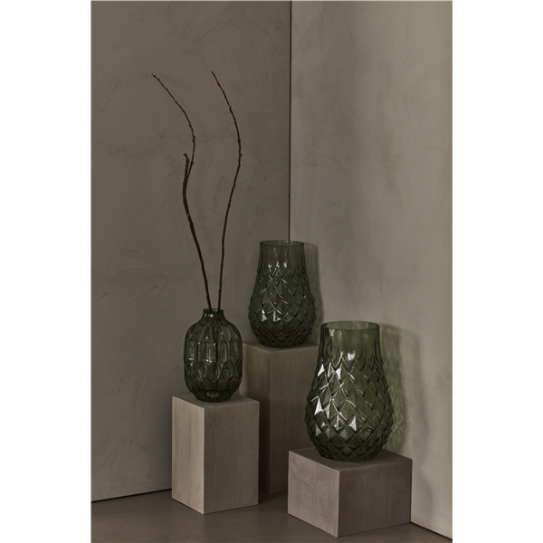 Grønn vakker vase fra Day Home. Day Green Glass vase har en herlig form og et fint utskåret mønster. Finnes i flere størrelser.