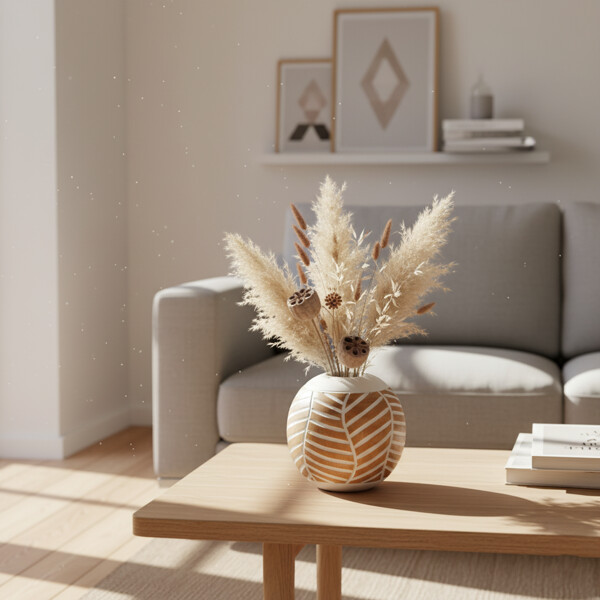 Kunstnerisk design: Viser frem et fengslende blad-inspirert mønster og en kompakt, sfærisk form, ideell for å tilføre en moderne, men likevel organisk estetikk til din innredning.