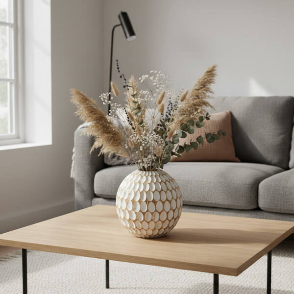 Unik Design: Har en tekstur og sfærisk form, ideell for å tilføre organisk eleganse til din innredning.