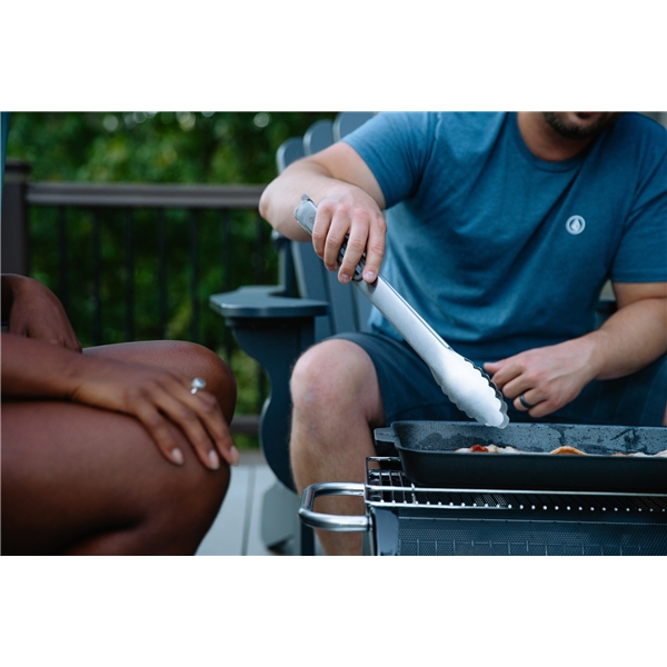 Prep & Grill Tool Kit fra BioLite er et praktisk sett med grillverktøy designet for bruk over åpen ild. Designet er ekstra langt for å brukes i en behagelig avstand fra flammene og varmen fra grillen eller ilden. Verktøyene er laget av slitesterkt, holdbart og rustbestandig rustfritt stål og leveres med en praktisk oppbevaringspose som er rullet sammen. Perfekt når du er på farten på tur eller utflukt. Grillsettet inneholder en santokukniv, en tang, en slikkepott med integrert hetteåpner og en praktisk opprullingspose. Bruk med BioLite FirePit, BioLite CampStove eller andre griller, kokeplater eller rett over bålet.
