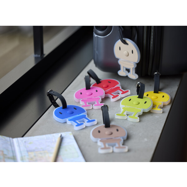 men også klar til å spre reiseglede. Fest den på vesken din og hopp glad med, uansett om du skal på storbyferie,