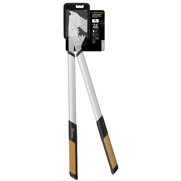 Quantum gremsaks L108 med sideinnsatser fra Fiskars. Grensaksene er optimalisert for tung kutting av ferskt tre med en diameter på opptil 50 mm. Saksen har en slitesterk aluminiumsaksel som er lette og naturlige korkhåndtak for optimal komfort.