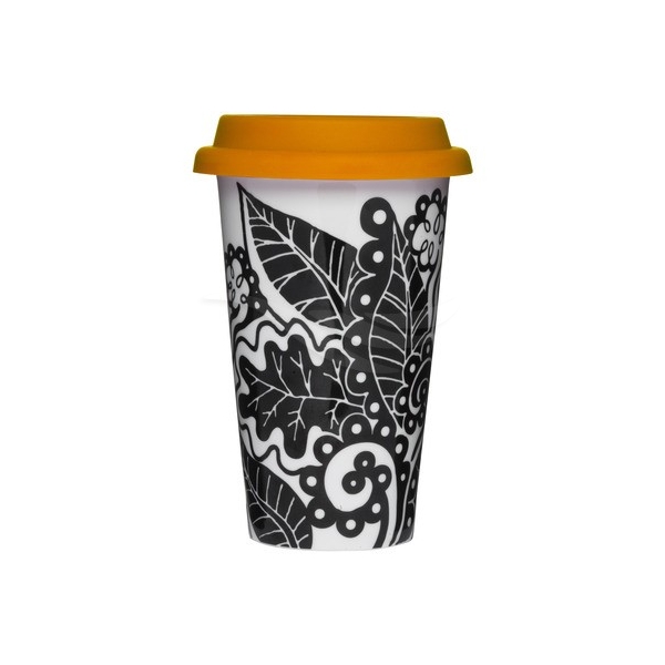 Vakker "Take Away kopp" i porselen med silikonlokk fra Sagaform. Design: Björkforth. Koppen har doble vegger.Mål: 25 cl