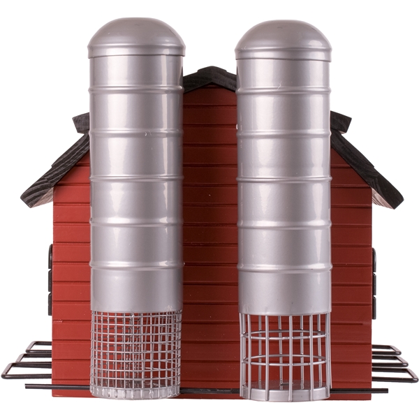På innsiden har låven tre separate rom som er fylt med forskjellige fuglefrø. Fyll dem med hampfrø (finkenes favoritt), sorte solsikkefrø som blir satt pris på av steinsviterne eller prøv en villfuglblanding for å ta vare på en rekke fuglearter. På kortsiden av låven er det også to siloer. Den ene kan fylles med inntil fem talgkuler, den andre siloen er perfekt for peanøtter. Jo større variasjon i maten er, desto flere fuglearter søker din fødeplass. Maten er også beskyttet mot regn og rusk inne i fjøset, noe som betyr at den holder seg fersk lenger.