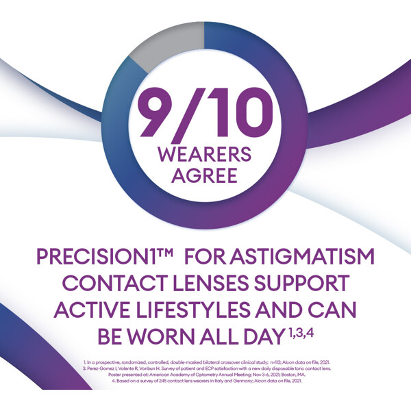 Lev livet ditt til det fulle med PRECISION1™ endagslinser. Disse geniale små parene åpner for en verden av muligheter, og garanterer varig godt syn fra første til siste time.