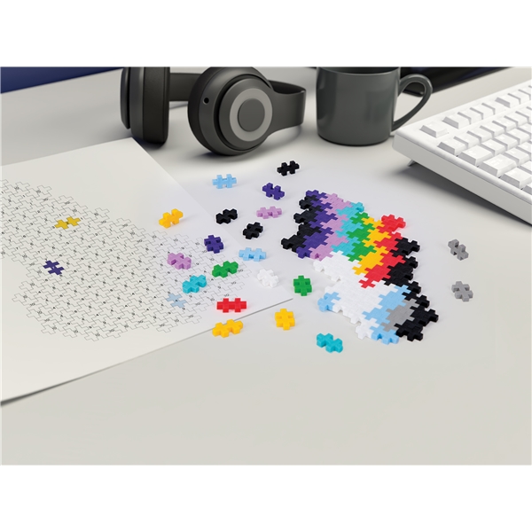 Lag en regnbue i et 2-dimensjonalt mønster ved å bruke Puzzle By Number. Match tall og farger og se hvordan kreasjonen din vokser. Plus-Plus er satt sammen i sin unike konstruksjon slik at det ikke trengs lim eller jern. Dekorer rommet ditt med det du har skapt eller lag noe helt nytt. Puzzle By Number Rainbow kommer med 500 Plus-Plus og en sjablong i en skala 1:1. Produktet er selvfølgelig kompatibelt med alle andre Plus-Plus-produkter.