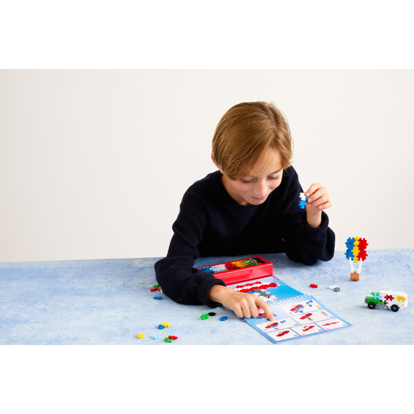 Plus-Plus Activity Pads gjør reisen eller ettermiddagen til et morsomt eventyr. Hver side byr på et nytt prosjekt å utforske, både i 2D og 3D. Med den smarte Puzzle By Number-teknikken i 2D får hver farge et nummer – en morsom og logisk måte for barnet å pusle sammen motivet. For 3D-idéene finnes det enkle trinn-for-trinn-anvisninger som gjør det lett å bygge sammen figuren. Hver activity pad inneholder 125 Plus-Plus-biter, pent oppbevart i en liten boks som er festet til blokken.