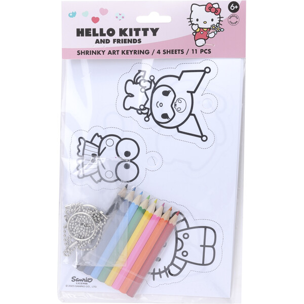 Settet inneholder fire ark krympeplast med 11 motiver, åtte penner, to nøkkelringer og ni kjeder. Alt som trengs for en kreativ og morsom aktivitet for alle små Hello Kitty-elskere!