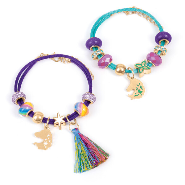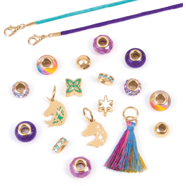 Lag to fantastiske armbånd inspirert av favoritter fra Netflix-serien Unicorn Academy. Settet inneholder to livlige farger av snor og 17 blendende perler og anheng som fanger seriens magiske essens.