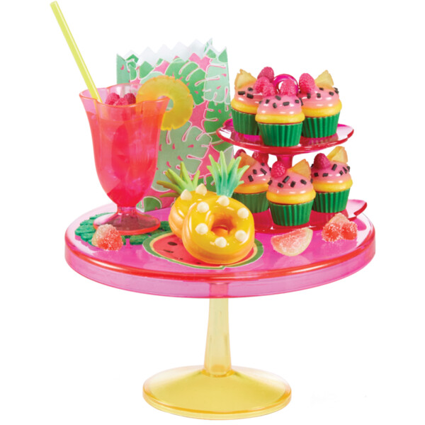 Hver kapsel inneholder minier som passer til ett av de 3 forskjellige trendy partytemaene: Tropisk, Dino og Regnbue. Hvert tema vil ha 3-5 kuler som du skal jakte på for å gjøre festen komplett. 3 kuler inneholder mat/drikke som passer til temaet og 1 kule inneholder dekorasjonsdeler for temaet.