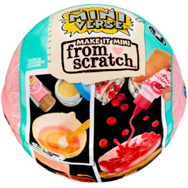 Møt MGA's Miniverse, Make It Mini From Scratch! Det originale minisamlerobjektet som du kan forberede, la herde og vise frem. Hver kule kommer med realistiske "ingredienser" i miniformat og kjøkkenutstyr for å lage dine egne minikopier av dine favorittkaker!
